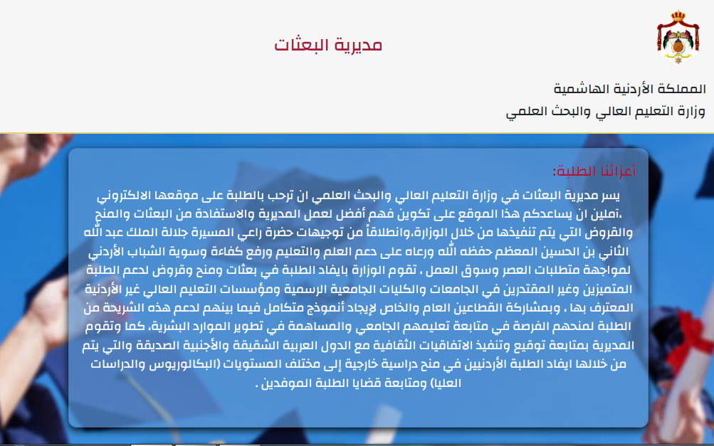 كما تم الإعلان عن ضرورة الالتزام بالشروط الخاصة بالتقديم على المنح والقروض حيث يجب فقط التقديم على موقع مديرية البعثات قسم البعثات والمنح الداخلية وذلك من خلال هذا الرابط ثم يتم تسجيل الدخول واستكمال الخطوات.