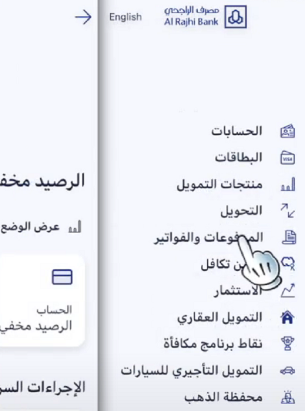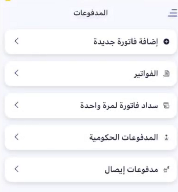 - اختر المدفوعات والفواتير من خلال القائمة الرئيسية.