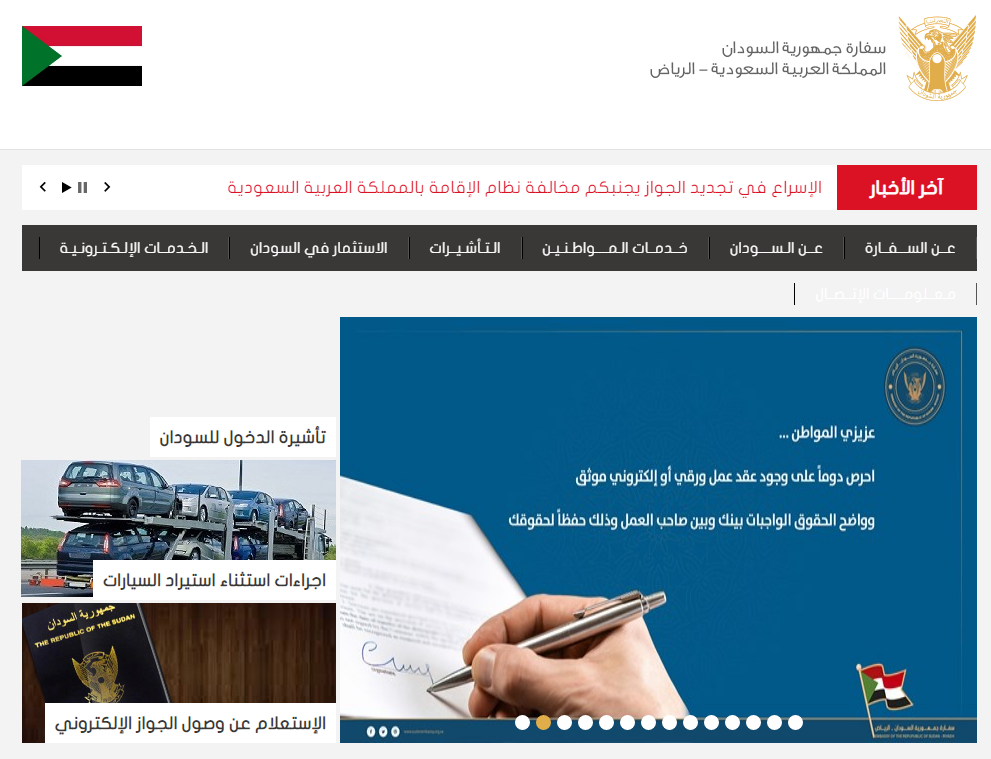 حيث إن سفارة جمهورية السودان كانت قد هيأت لرعاياها من المقيمين في المملكة العربية السعودية العديد من الخدمات الإلكترونية ومنها ما يتعلق بجواز السفر ومنها كذلك ما يتعلق بأمور أخرى تتعلق بالجواز مثل التجديد والإصدار وإصدار بدل فاقد كذلك.