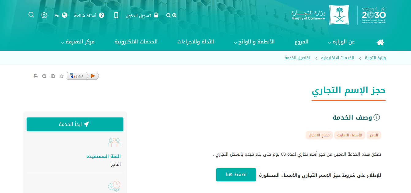 تعرف على طريقة حجز اسم تجاري عبر وزارة التجارة السعودية والذي يعد واحدة من أهم الأمور والبيانات التي يتم البحث عنها من قبل العديد من أصحاب المؤسسات العاملة في المملكة، ونعرض ذلك لاحقا.