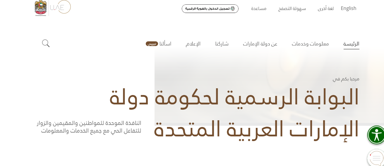 - قم بالتوجه إلى الموقع الرسمي للبوابة الرسمية لحكومة دولة الإمارات العربية المتحدة.