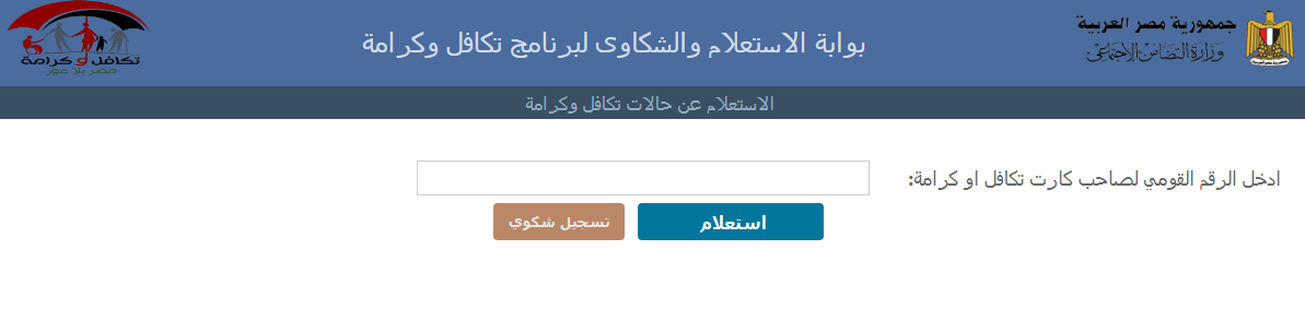 الاستعلام عن شكاوى تكافل وكرامة بالرقم القومي والاسم