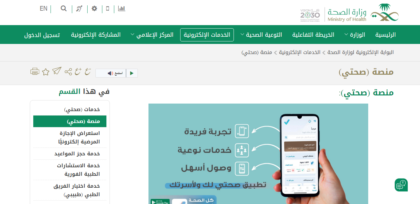 - الدخول إلى الموقع الرسمي لمنصة صحتي.