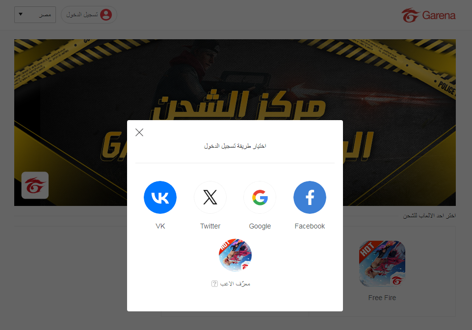 - الدخول إلى الموقع الخاص بهذه الخدمة وهو موقع جارينا فري فاير.