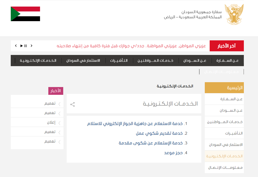 - الولوج إلى الموقع الرسمي الخاص بالسفارة السودانية.
