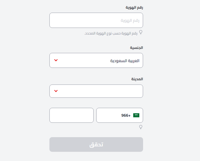 - ادخل البيانات الشخصية اللازمة (رقم الهوية، والجنسية، والمدينة، ورقم الجوال).