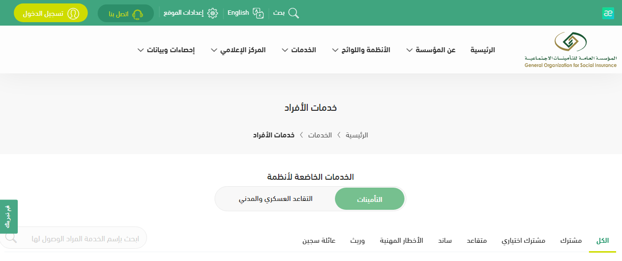 - النقر على التأمينات أون لاين.
