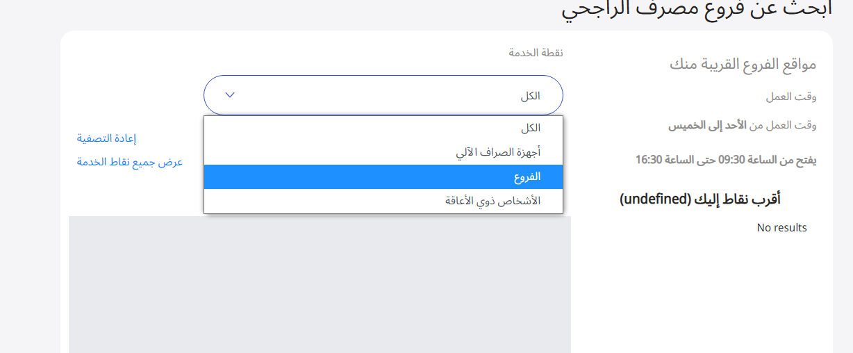 - سوف تظهر قائمة بأقرب نقاط الراجحي إلى العميل على الفور.