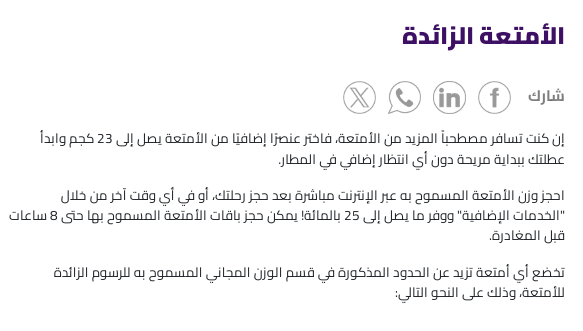 القطعة الاضافية المقرر دفع رسومها في المطار |