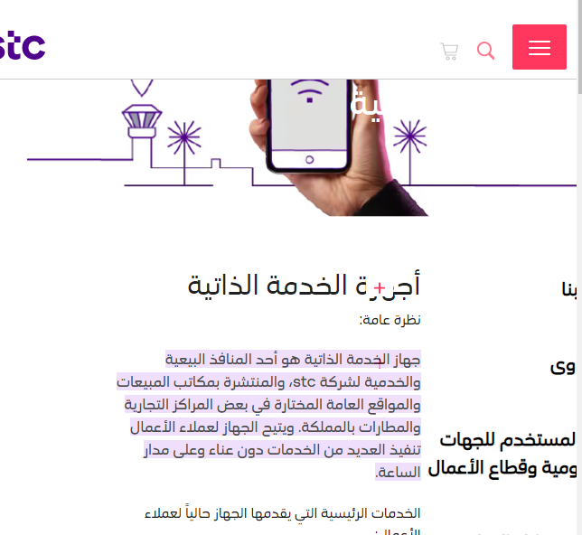 هل الخدمة الذاتية ٢٤ ساعة STC