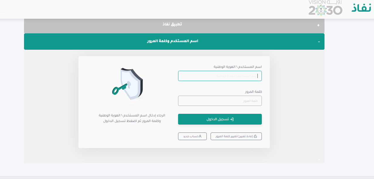 - إدخال اسم المستخدم أو رقم الهوية الوطنية في الحقل المخصص له.