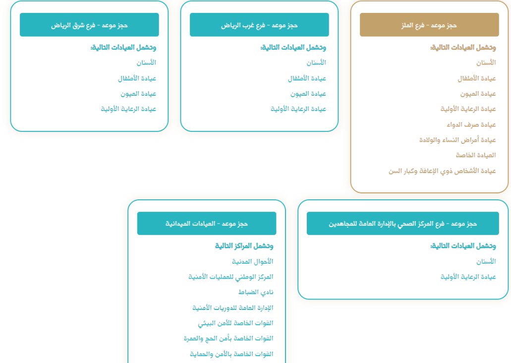 - تحديد العيادة من ضمن الخيارات المتاحة.