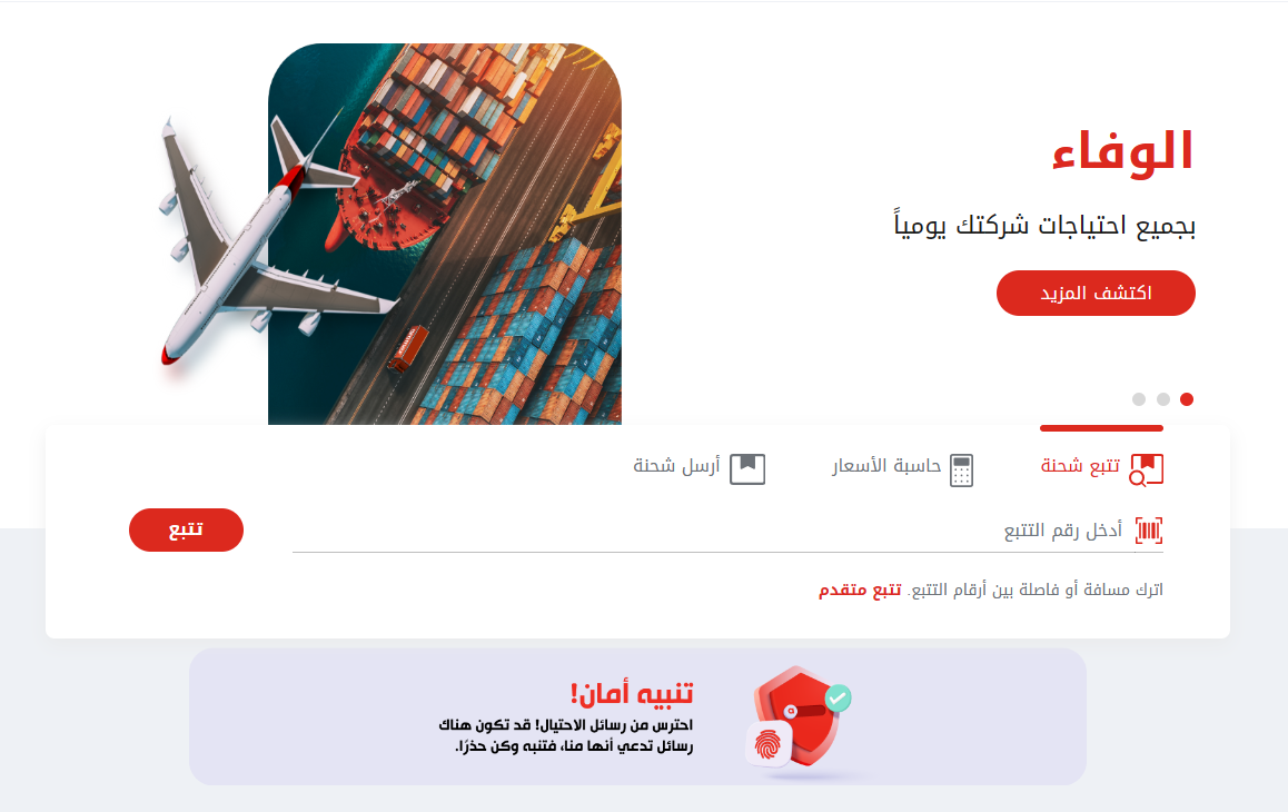 - الضغط على خيار تتبع الشحنات من خلال القائمة الرئيسية.