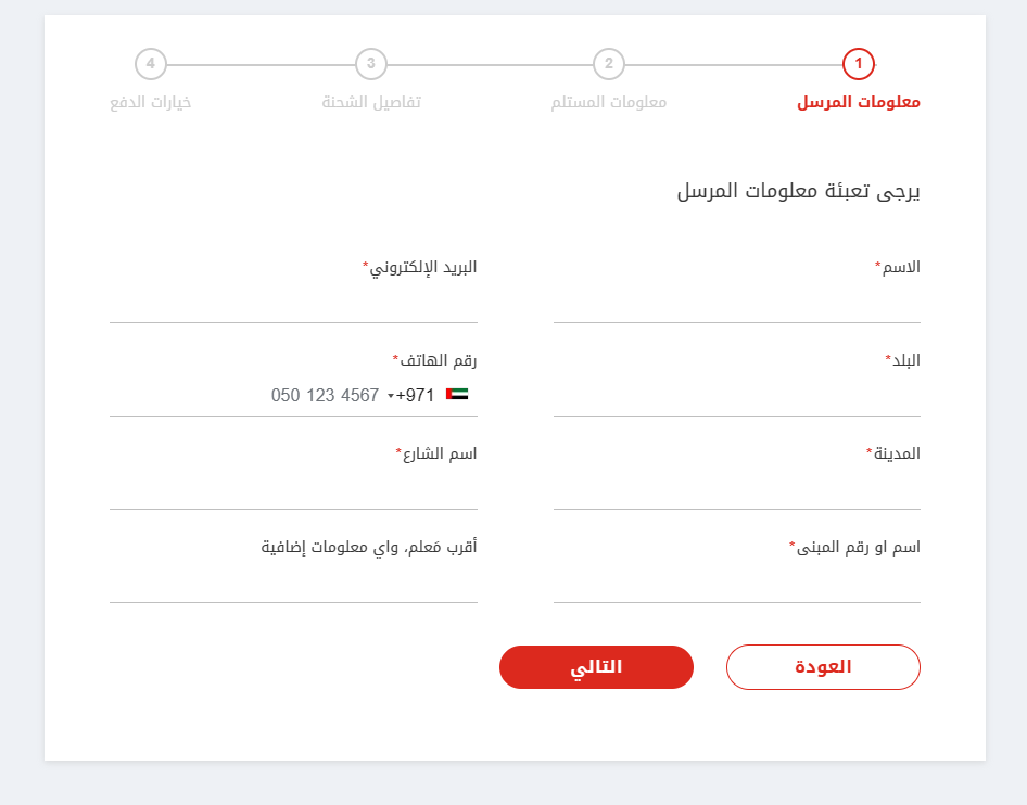 - حدد كافة البيانات المطلوبة للشحنة بشكل صحيح.