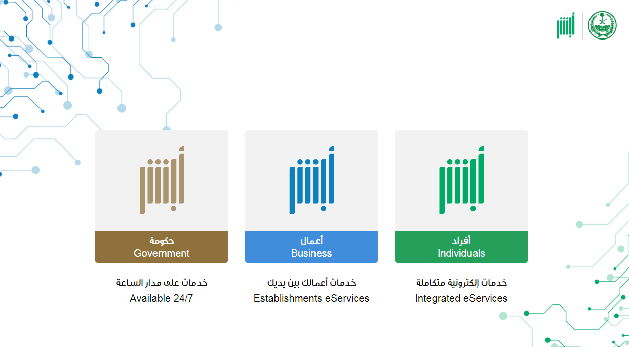 - ثم قم بالضغط على أيقونة أبشر أفراد من خلال الواجهة الرئيسية للموقع.