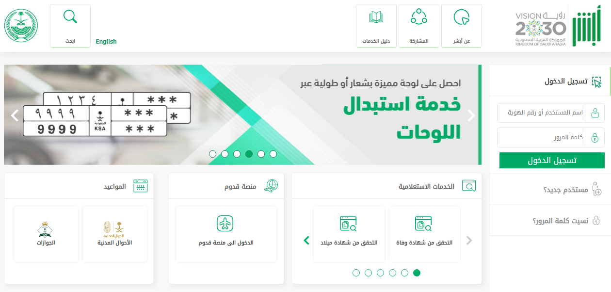 - قم بالدخول بشكل مباشر إلى الموقع الرسمي لمنصة أبشر "من هنا".