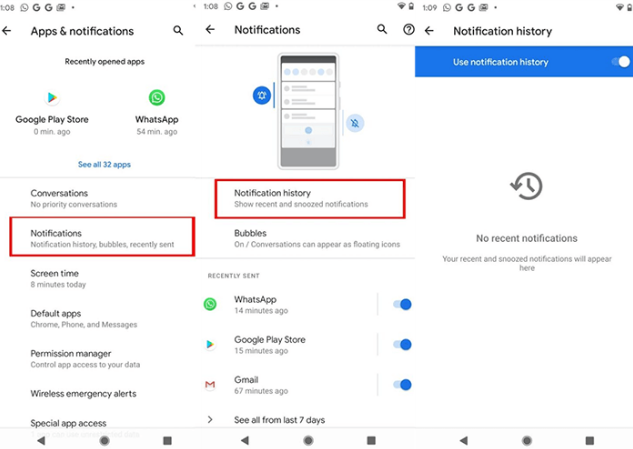 - ثم قم بتحديد "Notification History" ثم قم بعدها بتغيير العلامة التي تراها بجانب "Use Notification History".