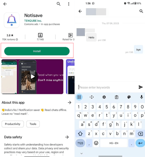 نتعرف من خلال ما يلي على طريقة قراءة رسائل الواتس اب المحذوفة عن طريق تثبيت البرنامج على هواتف الاندرويد: