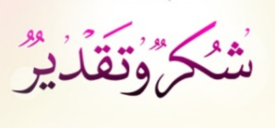 - إن كلمة شكرً لن توفيكم حقكم، وحقًا سعيتم وبذلتم قصارى جهدكم لهذا أتوجه بكامل الشكر والتقدير لكم.