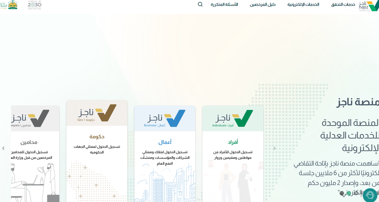 - تتمثل الخطوة الأولى في الدخول إلى منصة ناجز الإلكترونية.