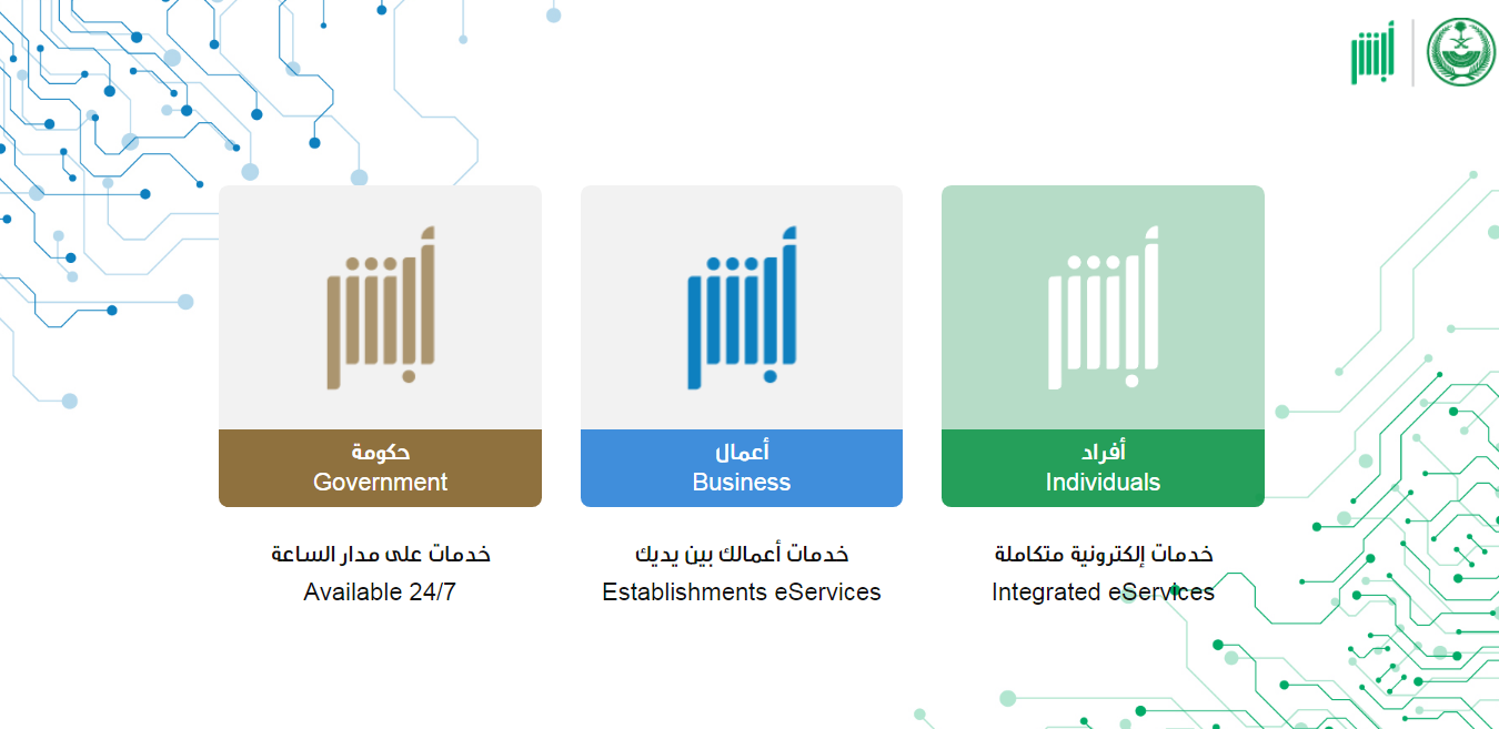 - الولوج إلى منصة أبشر الرقمية.