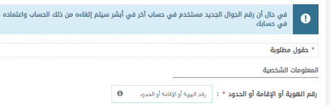 - تعبئة كافة البيانات المطلوبة رقم الهوية ورقم الجوال، عنوان البريد الإلكتروني.