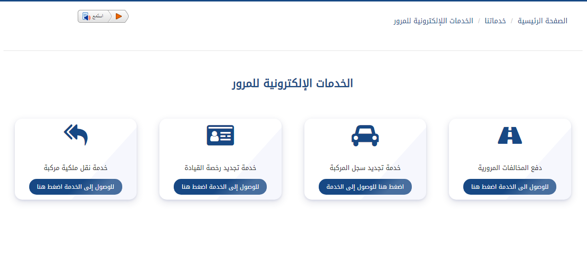 - يحدد خيار الخدمات الإلكترونية للمرور.