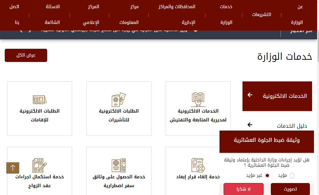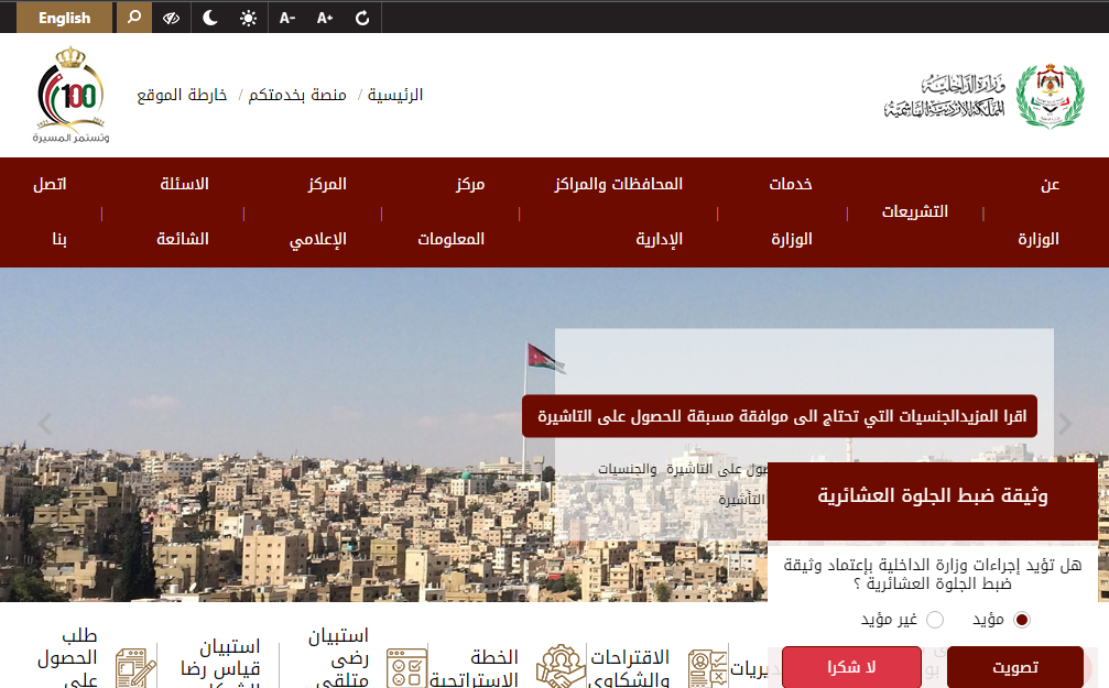 - يتم الولوج إلى موقع وزارة الداخلية الأردنية.