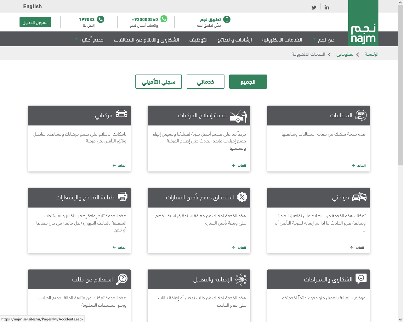 الاستعلام عن حادث في نجم برقم الحادث