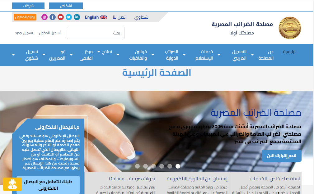 - الولوج إلى الموقع الرسمي لمصلحة الضرائب المصرية.