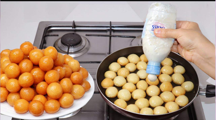 - يتم إحضار ملعقة صغيرة ودهنها بالزيت من ثم البدء في تقطيعها كرات صغيرة ووضعها على النار في زيت غزير للتسوية إلى أن تصبح ذهبية اللون.