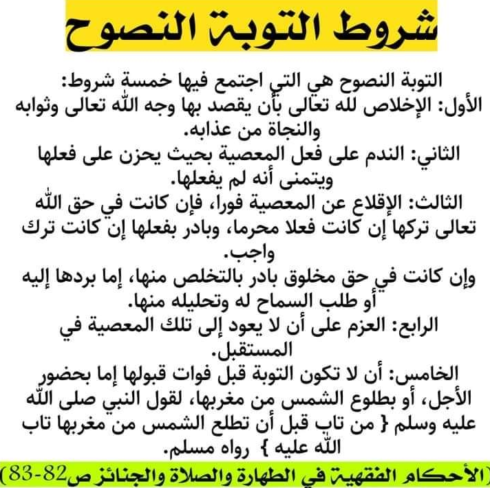 بهذا يكون قد تم عرض شروط التوبة النصوحة مع توضيح التفاصيل الخاصة بالتوبة كاملة، وهي ما يتم من خلالها معرفة كيف يمكن للمسلم أن يتحول من شخص على معاصي إلى تائب إلى الله وأواب.