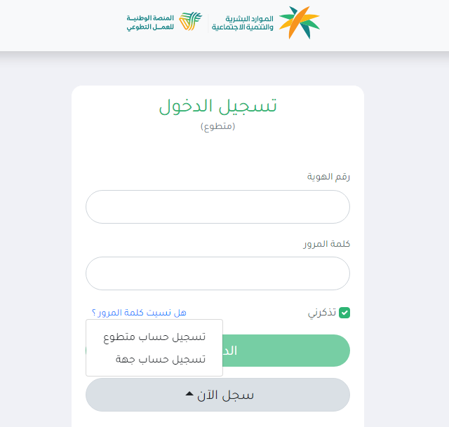 - ادخل إلى المنصة الوطنية العمل التطوعي.