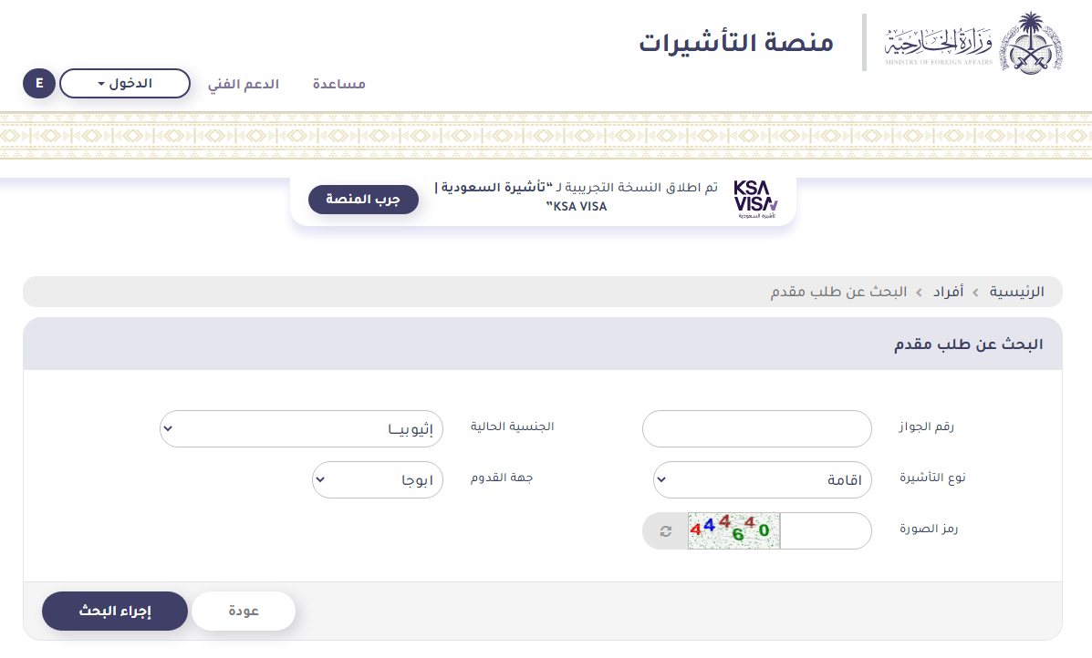 ما هي شروط الاستعلام عن تأشيرة برقم الطلب من وزارة الخارجية