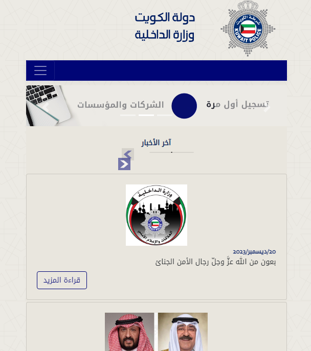 - التوجه إلى الموقع الرسمي الخاص بوزارة الداخلية الكويتية