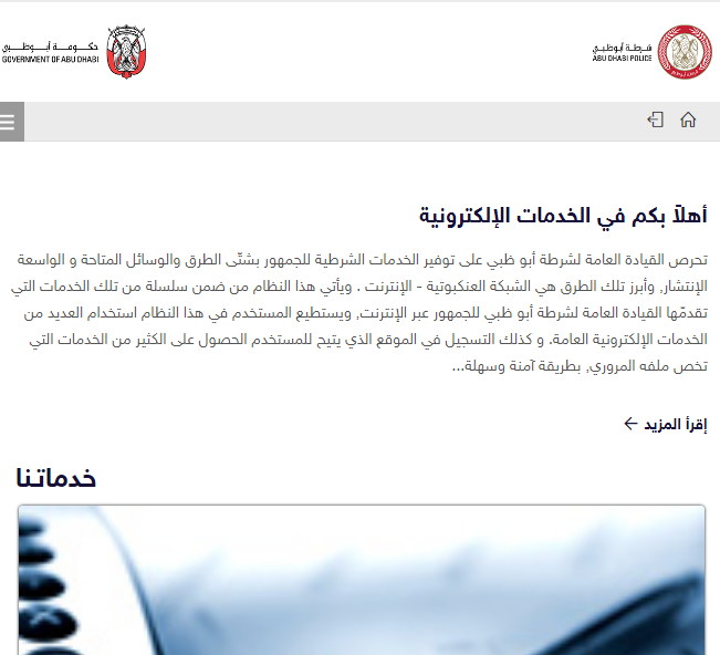 - الولوج إلى الموقع الرسمي الخاص بشرطة أبو ظبي عبر الإنترنت