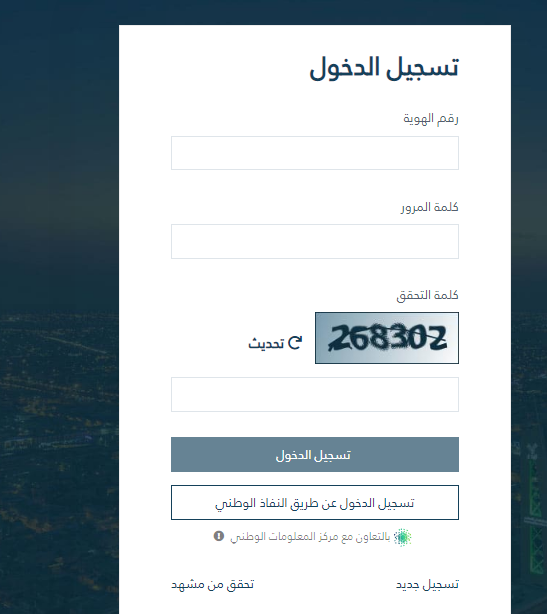 - املأ بيانات الدخول (رقم الهوية، وكلمة المرور).