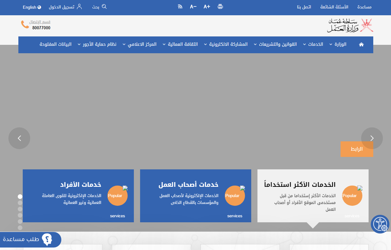 - قم بالدخول إلى الموقع الرسمي الخاص بوزارة العمل العمانية "من هنا".