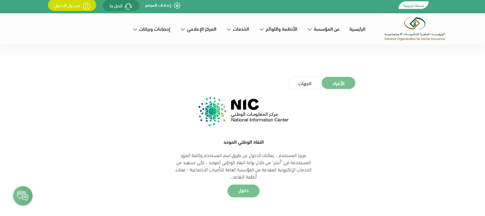 - ابدأ بزيارة الموقع الرسمي للتأمينات الاجتماعية في المملكة العربية السعودية.