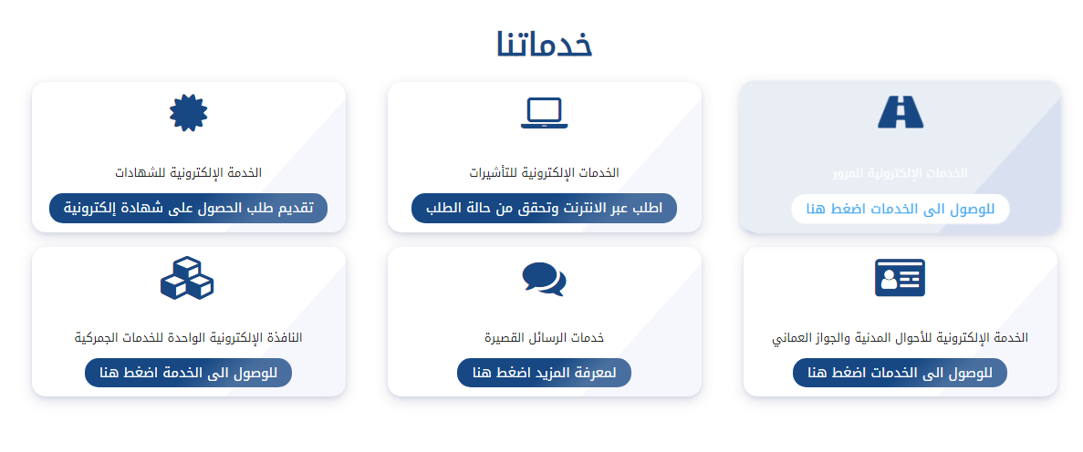 - الخدمات الإلكترونية للأحوال المدنية والجواز العماني.