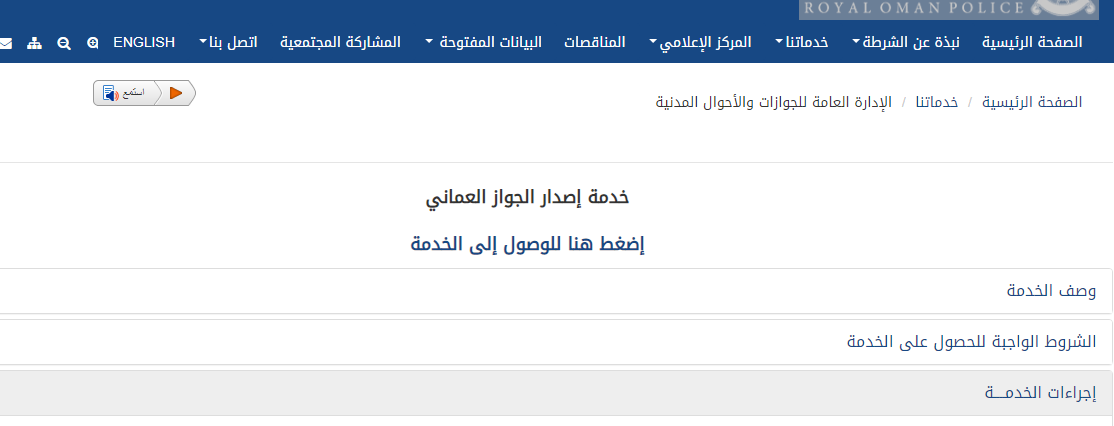 - ادخل إلى الخدمة مباشرةً عبر موقع شرطة عمان السلطانية.