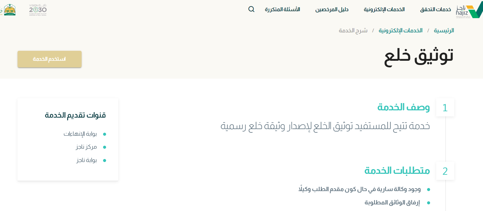 الكترونيا بالخطوات من الموقع الرسمي توثيق خلع لإصدار وثيقة خلع رسمية، حيث تعتبر تلك واحدة من أهم وأحدث الخدمات في المملكة العربية السعودية، حيث يتم القيام بها عبر منصة ناجز عن طريق بعض الخطوات الإلكترونية البسيطة، وهذا لأن الحكومة السعودية دائمًا ما تهدف إلى راحة المواطنين.