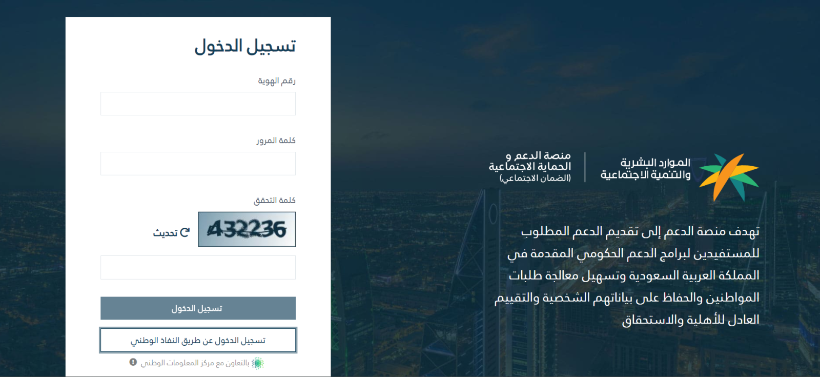تُعَد منصة النفاذ الوطني إحدى الوسائل التي وفرتها وزارة الموارد البشرية للتحقق من أهلية الفرد للضمان الاجتماعي، وفيما يلي تفصيل لكل الخطوات الضرورية لإتمام هذه العملية: