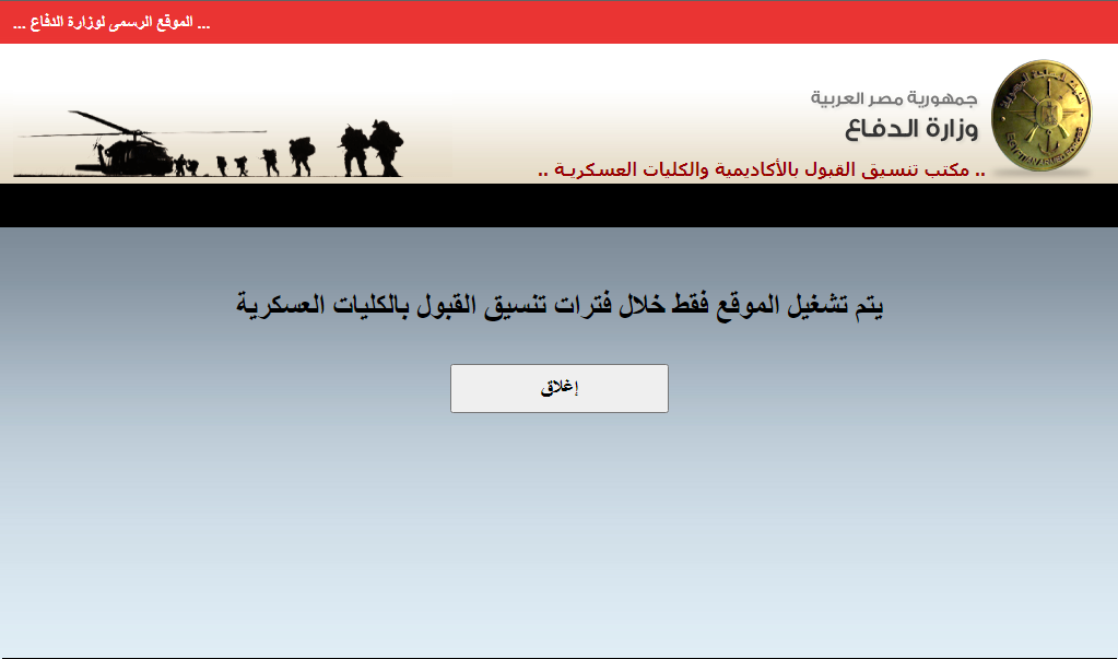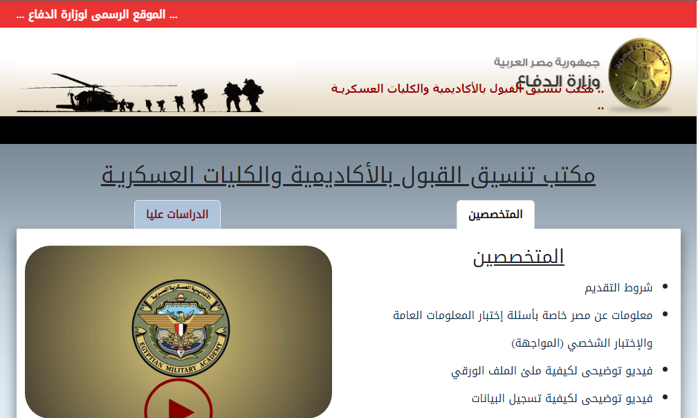 من خلال الوصول إلى معرفة شروط القبول في الكلية الحربية نشير إلى أنه يتم التقديم في الكلية الحربية من خلال الموقع الرسمي لوزارة الدفاع المصرية وذلك عندما يكون مكتب تنسيق القبول في الكليات العسكرية مفتوحًا.