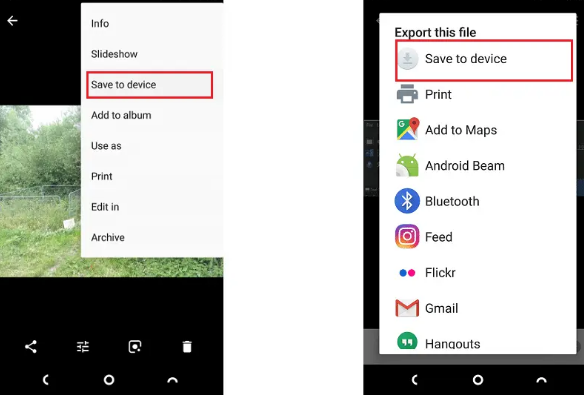 - النقر على حفظ إلى الجهاز مرة أخرى من الخيارات المتاحة في القائمة.