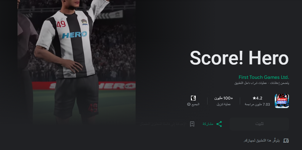 يمكن الحصول على لعبة كرة قدم على الهاتف أفضل من فيفا وكذلك بيس، وهي لعبة Score! Hero وهي اللعبة التي يتم من خلالها الاستمتاع بالكثير من المزايا التي لا تجدها في أي لعبة أخرى.