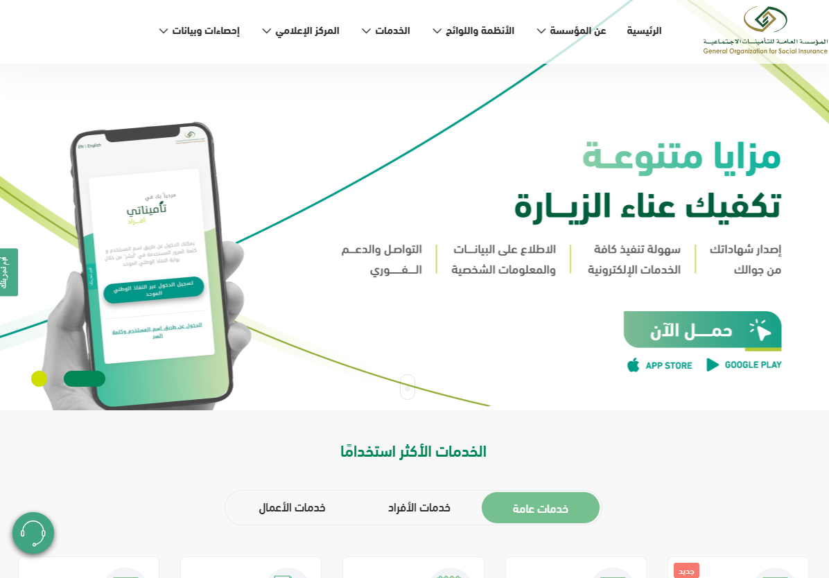 - الوصول إلى الموقع الرسمي لمؤسسة التأمينات الاجتماعية.
