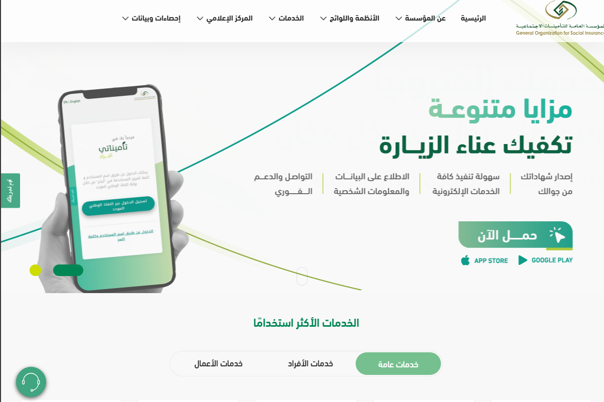 - الوصول إلى الموقع الرسمي لمؤسسة التأمينات الاجتماعية.