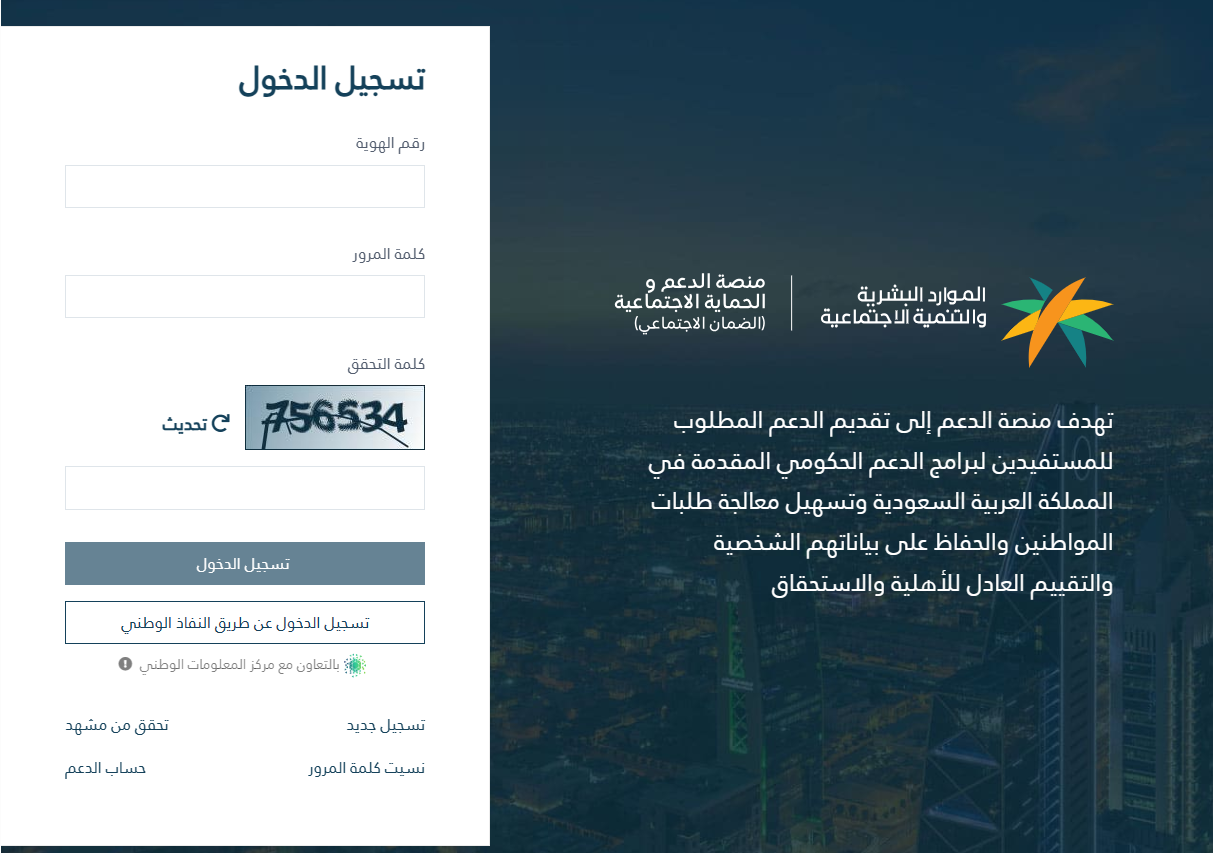 - الانتقال إلى الموقع الرسمي لمنصة الدعم والحماية الاجتماعية.