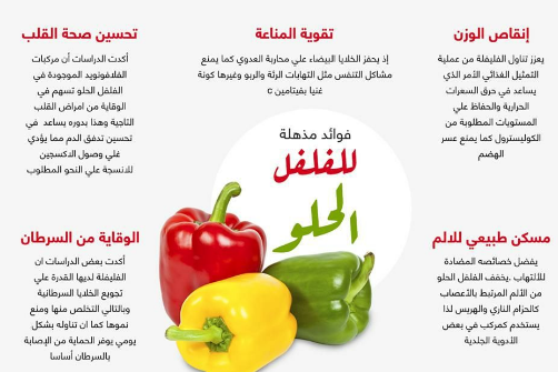 إن الفلفل الحلو يحمل العديد من الفوائد الرائعة التي تجعل الناس يحبون تناوله، وفيما يلي نعرض لكم أهم فوائد الفلفل الحلو على النحو التالي: